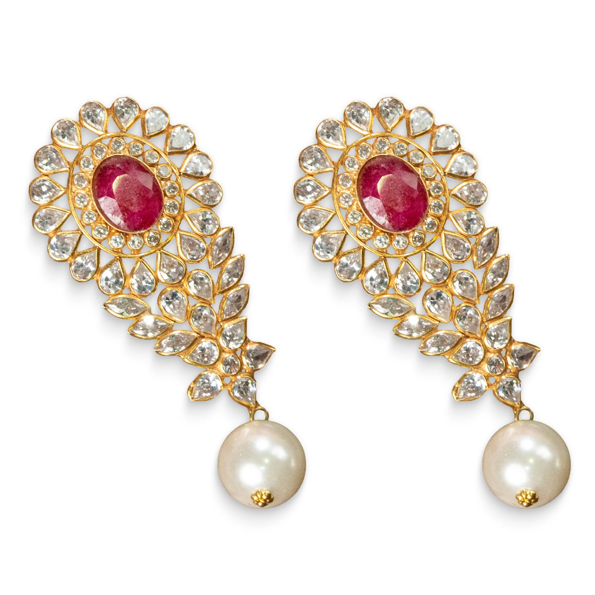 Add a royal touch to your festive and wedding looks with these stunning Kundan Ruby Drops. Beautifully handcrafted in an elegant 18kt gold finish, these earrings feature red stones and intricate Kundan work that exude timeless grace. The delicate drop design adds a hint of sophistication, making them the perfect accessory for festive celebrations, weddings, and special occasions. Pair them with traditional or fusion wear to complete your elegant ensemble.